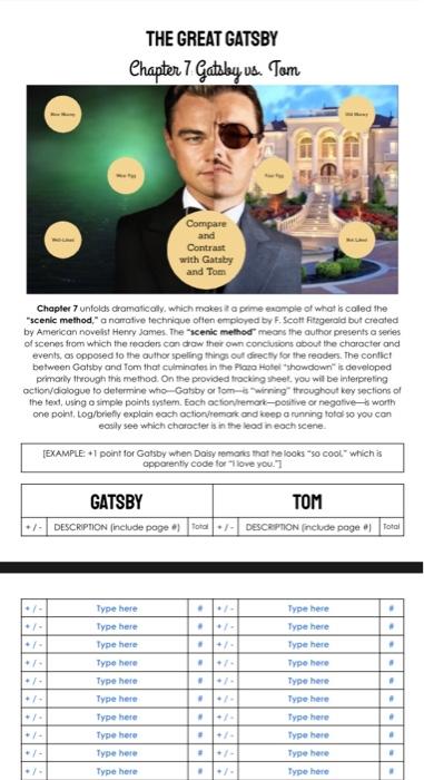 The Great Gatsby Chapter 7 Mini Assignment By Sandra Giammarco Tpt